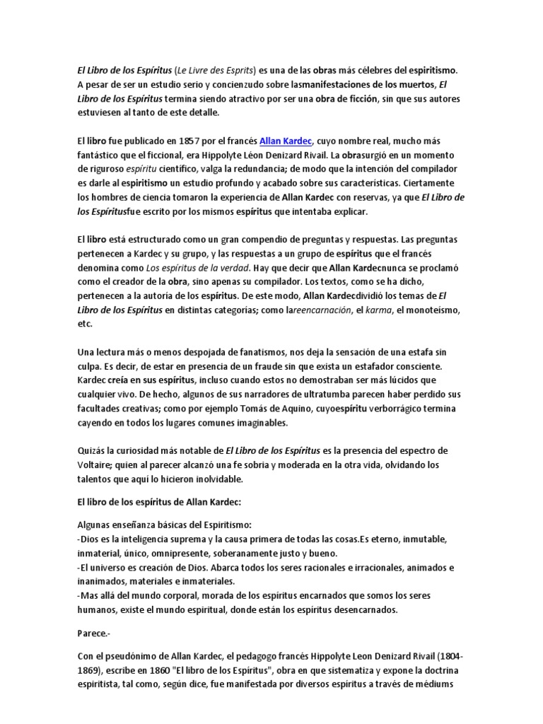 Descarga gratis el libro de los espíritus en pdf. Federación espírita española federación de asociaciones espíritas españolas que estudian, practican y divulgan el espiritismo Como en los demás escritos sobre la El libro de los muertos allan kardec. Las notas del traductor se presentan entre corchetes …, para diferenciarlas de las del autor: